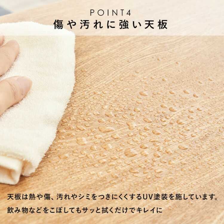 さらに天板には汚れやシミがつきにくいUV塗装が施されているため、飲み物をこぼしやすいお子様のいるご家庭でも安心してお使いいだけます。