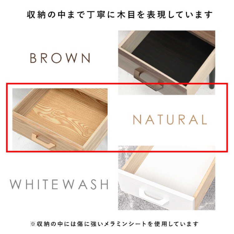引き出し内寸:幅35cm、奥行39cm、高さ10cm材質 天板:MDF、タモ突板、UV塗装