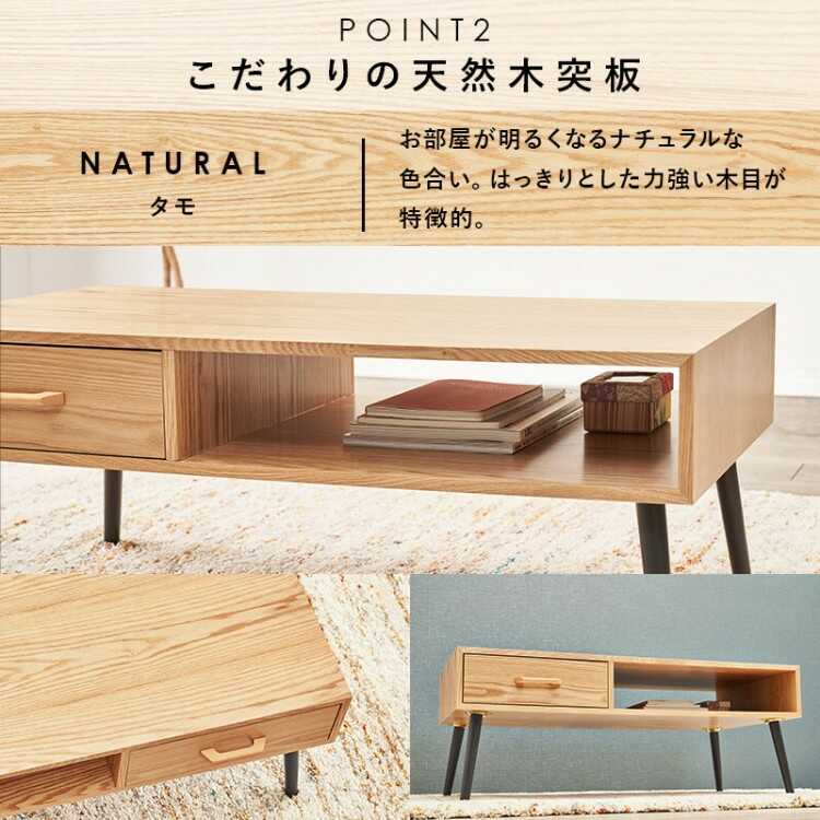 TA-2850 幅100cm・タモ製リビングテーブル(ナチュラル色/引出し付き)