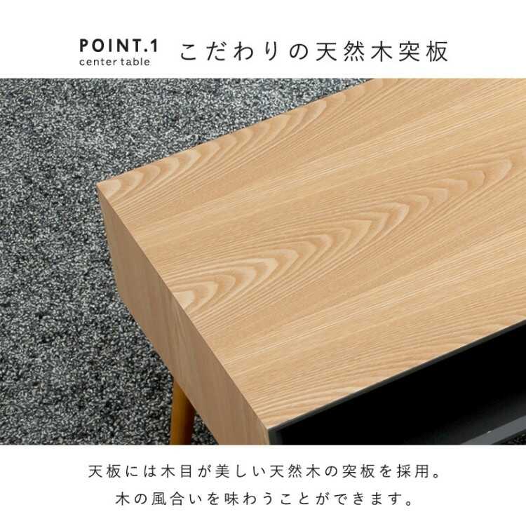 幅80cm・収納力が豊富なかっこいいローテーブル(天然木製タモ材/ナチュラル色)
