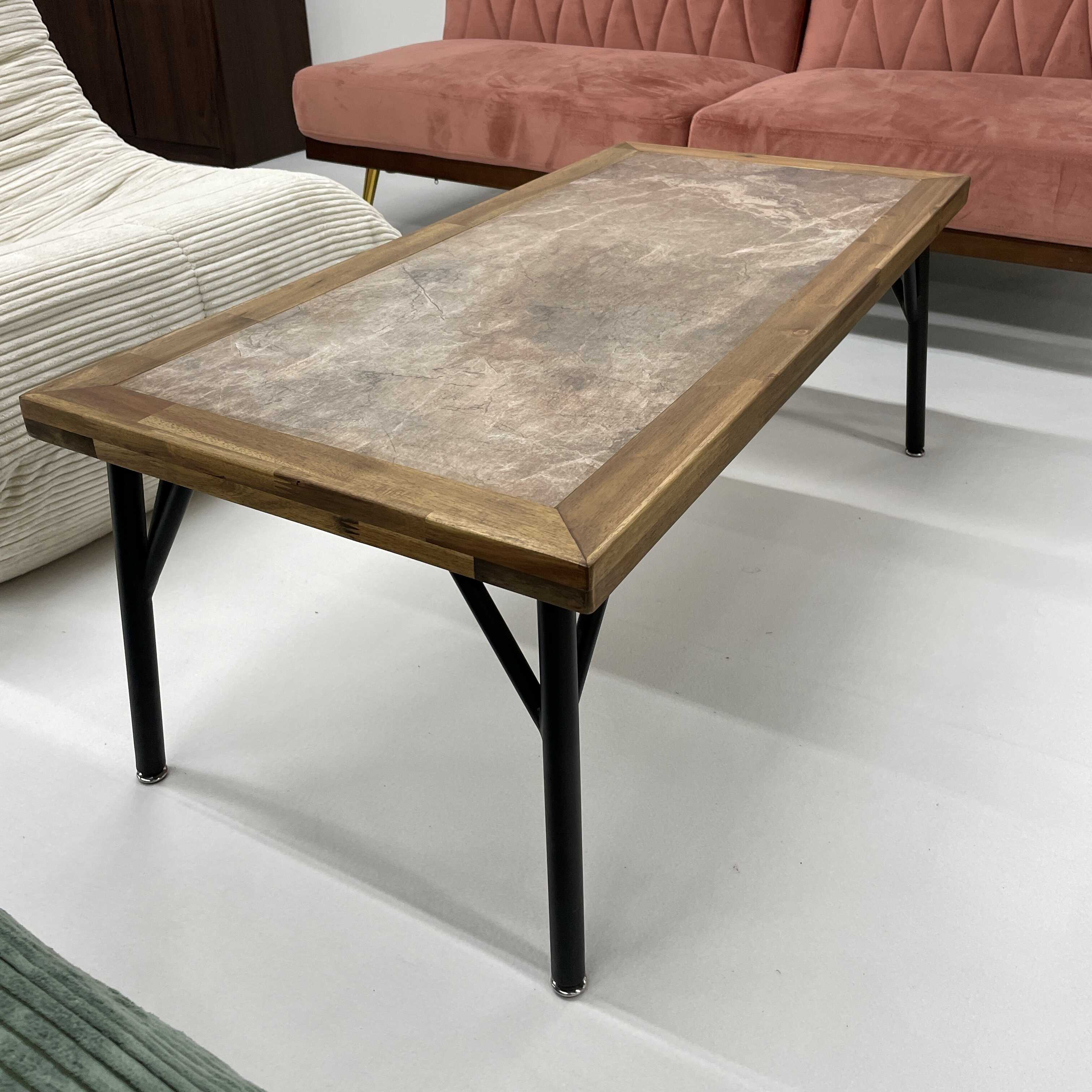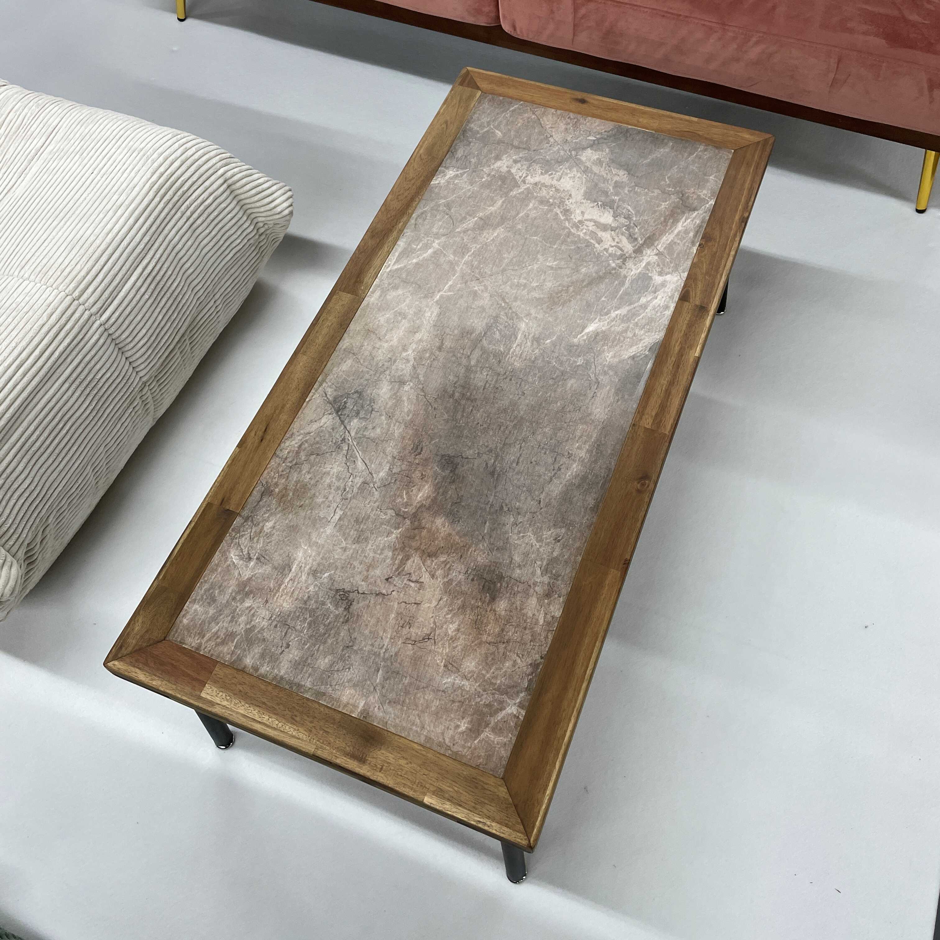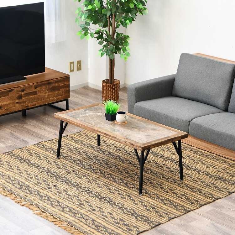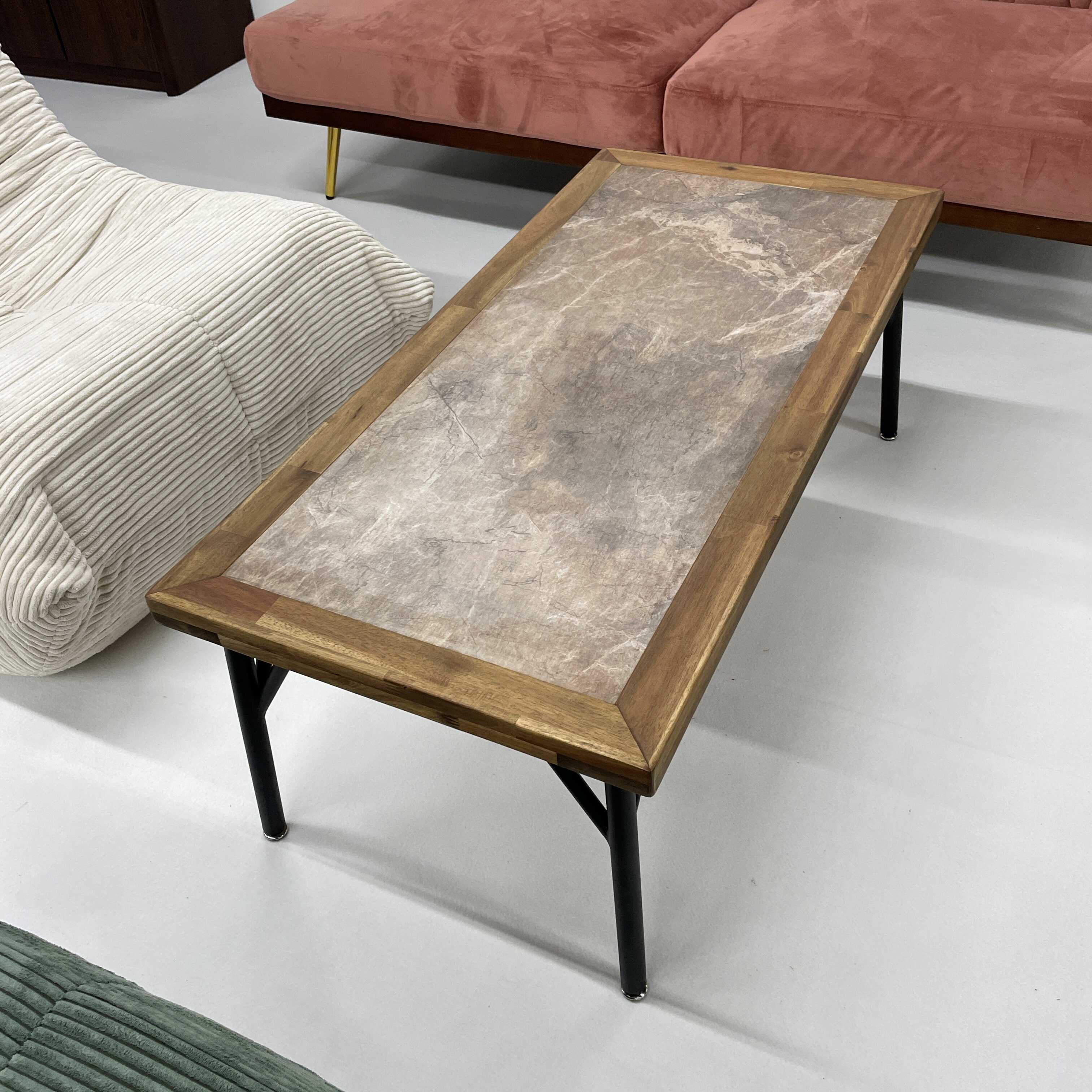天然木アカシアの枠にメラミンをはめたローテーブル