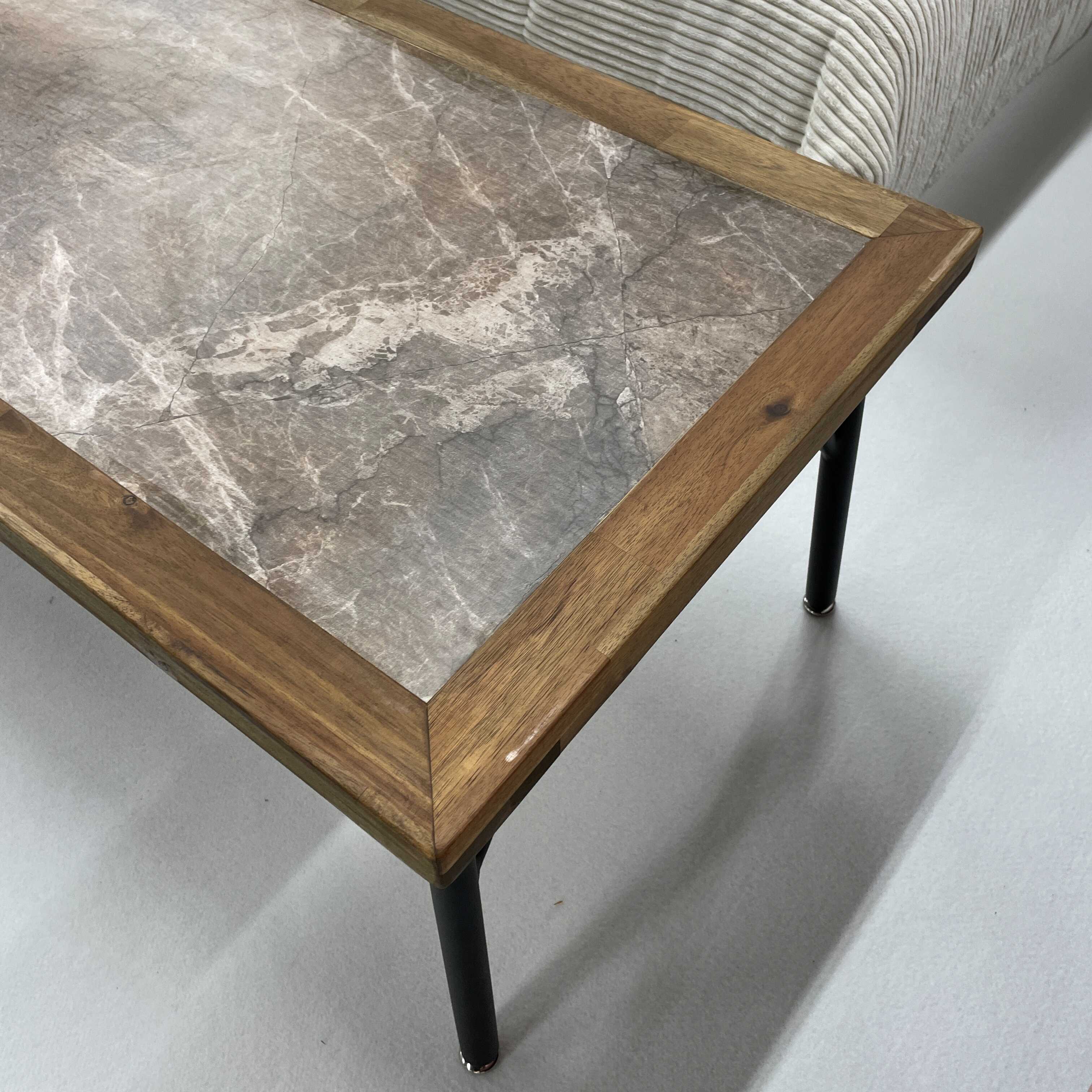 天板はストーン柄メラミンシート貼りで、アカシアの枠との相性は抜群!