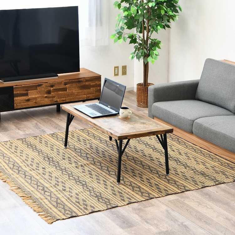 幅105cm・天然木アカシア材&メラミン貼りローテーブル
