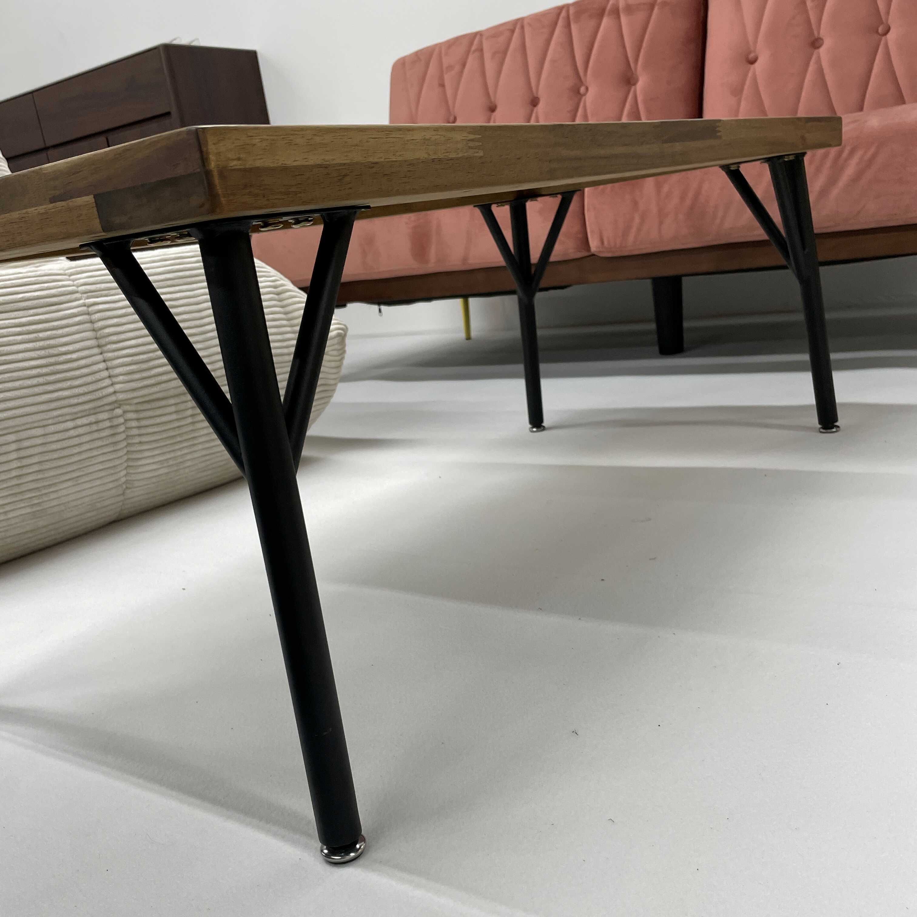 天然木アカシアとメラミンシートという全く異なる素材を違和感なく融合させ、他にはないオリジナリティーの高いデザインに仕上げたローテーブル。