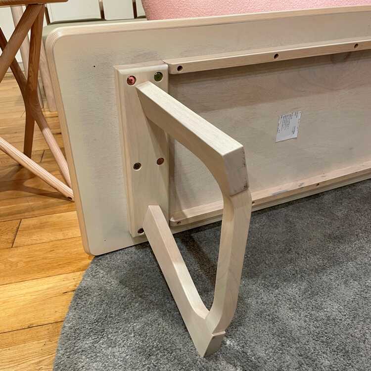 本物ゆえの性質である「反り」を軽減する為、天板の底には長めの反り止めを2本入れることでしっかりと対応。