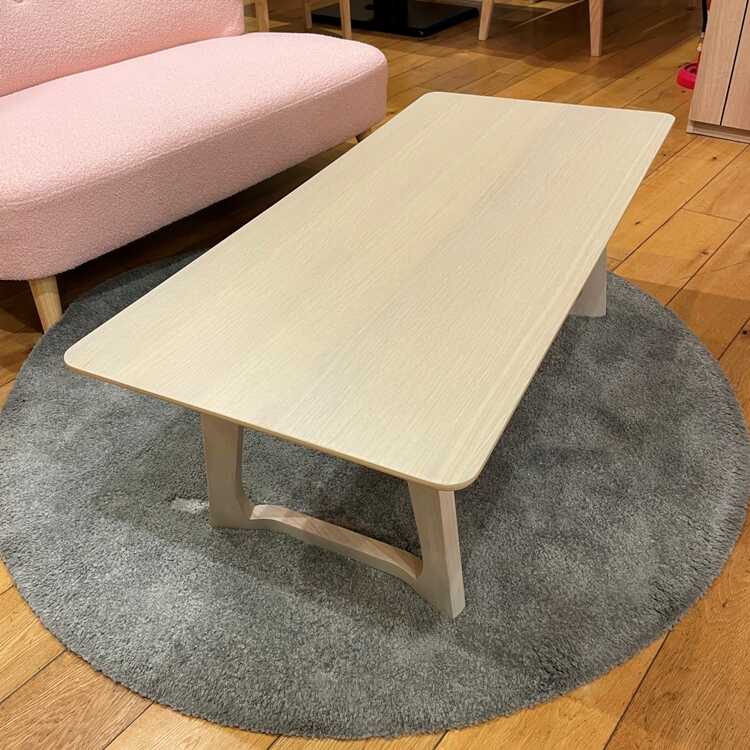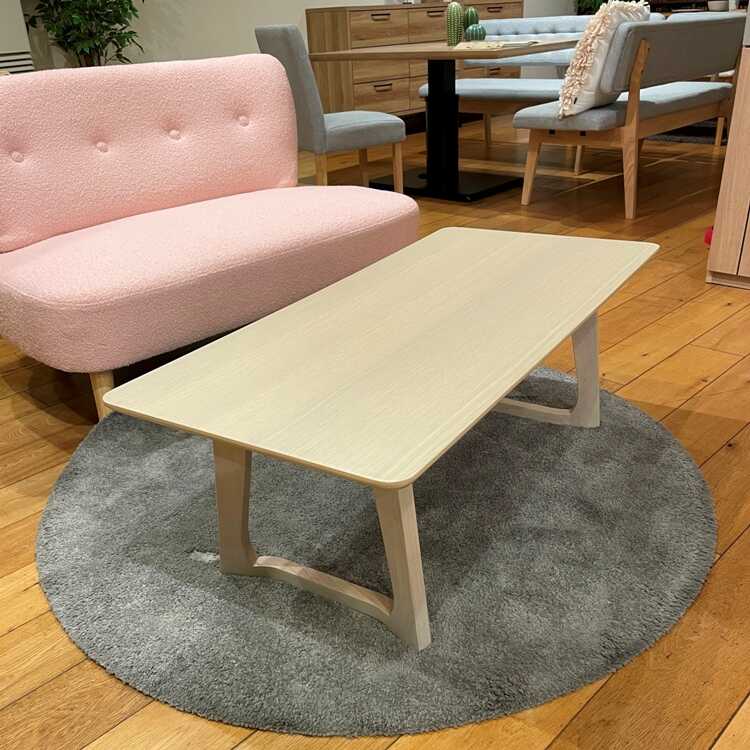 幅105cm・天然木オーク製リビングテーブル(白ホワイト)