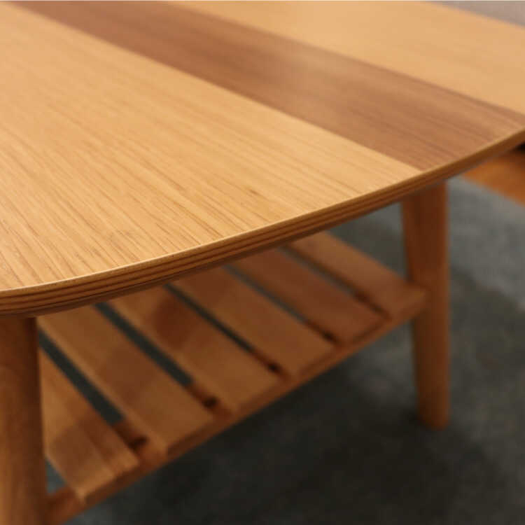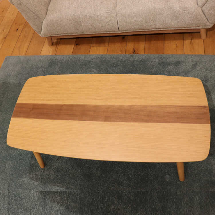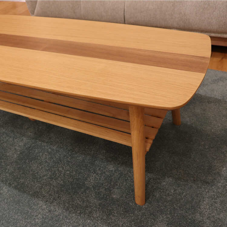 天板のセンターにお洒落なラインが入った、天然木オーク製のセンターテーブル。