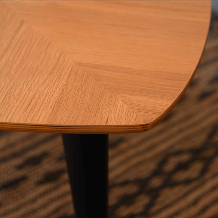 中央に入ったラインから左右に木目が伸びたデザイン…貼り合わせ部分に木目の違いを見せることで、本物の葉っぱのような雰囲気です。