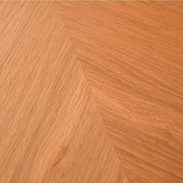 オーク材は木目がハッキリしていて節も多いので豪快な反面、表情に荒っぽさも出てしまうのが特徴ですが、比較的穏やかな木目の部分を抜粋して使った突板貼りですのでとてもキレイです。