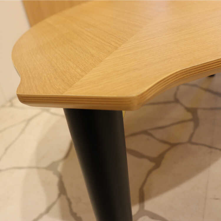 長方形に比べるとテーブル周辺の圧迫感が低く、曲線なので周辺を歩きやすく感じます。