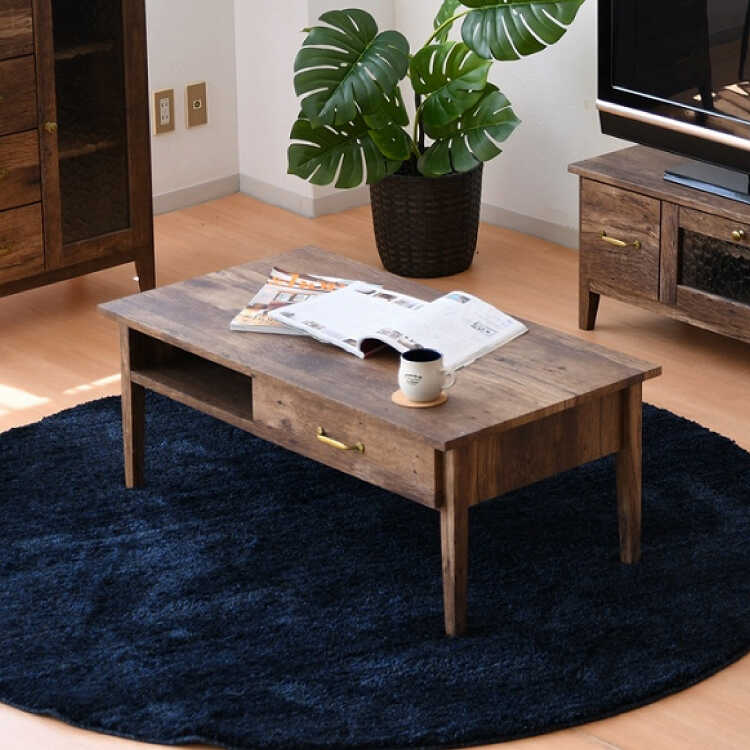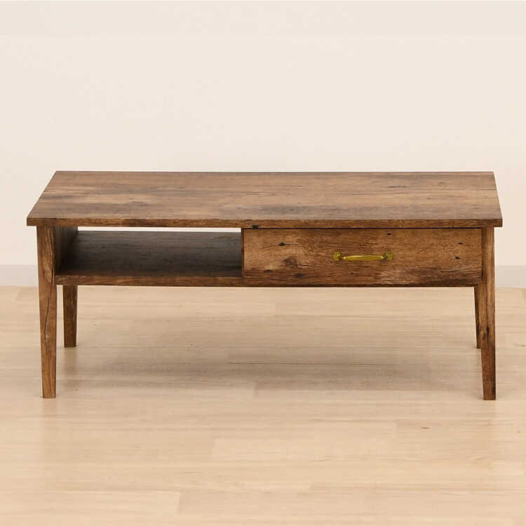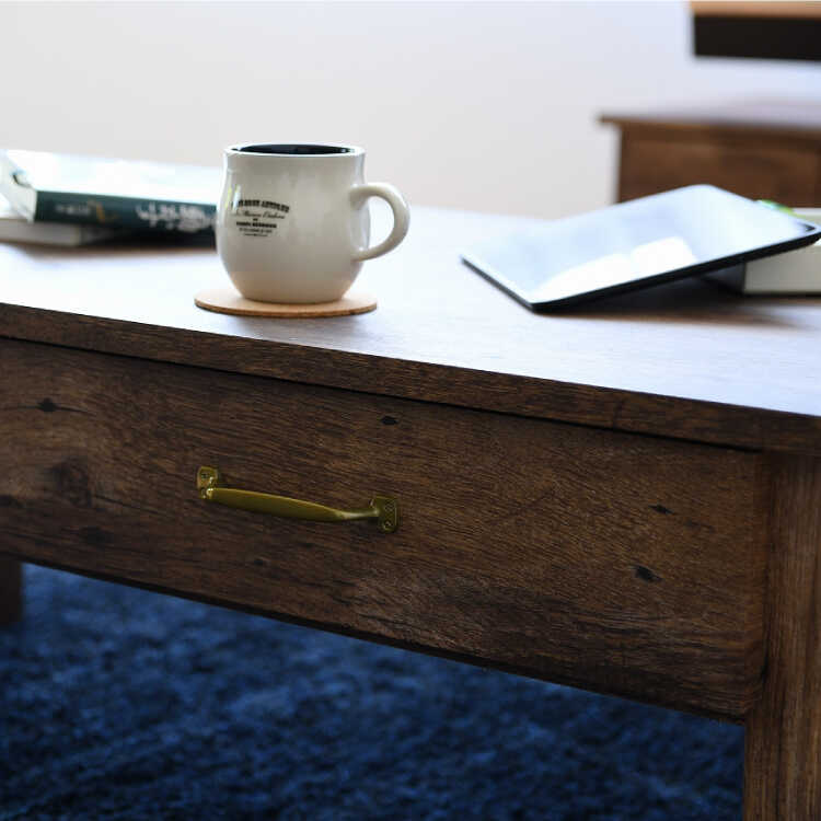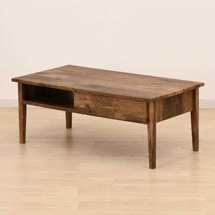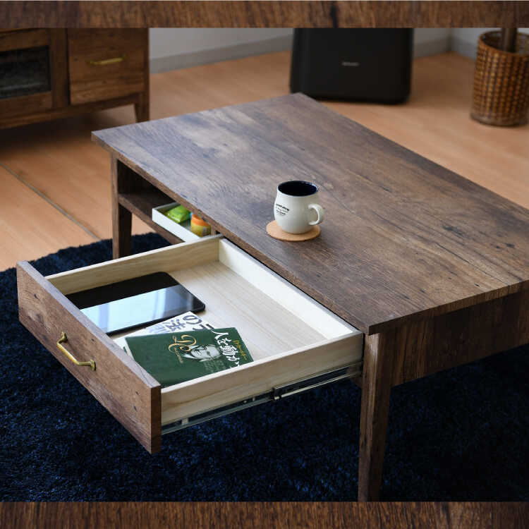 幅100cm・古材風アンティークなセンターテーブル(完成品・引出し収納付き)