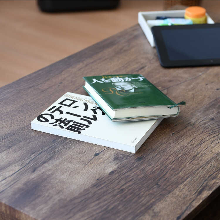 古材風のシートを貼ったアンティーク感溢れるローテーブル。