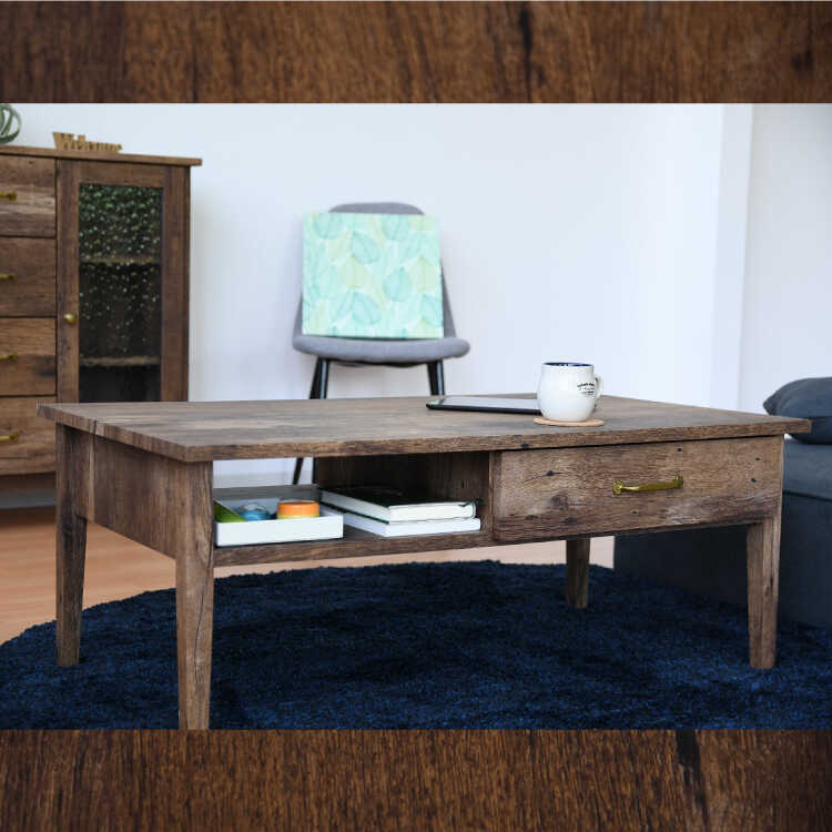 アンティークな古材風のセンターテーブル