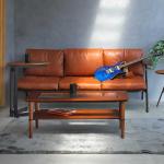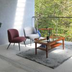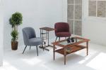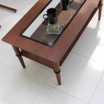ウォールナット&ガラス製センターテーブルの脚は天然木ラバーウッドを採用。