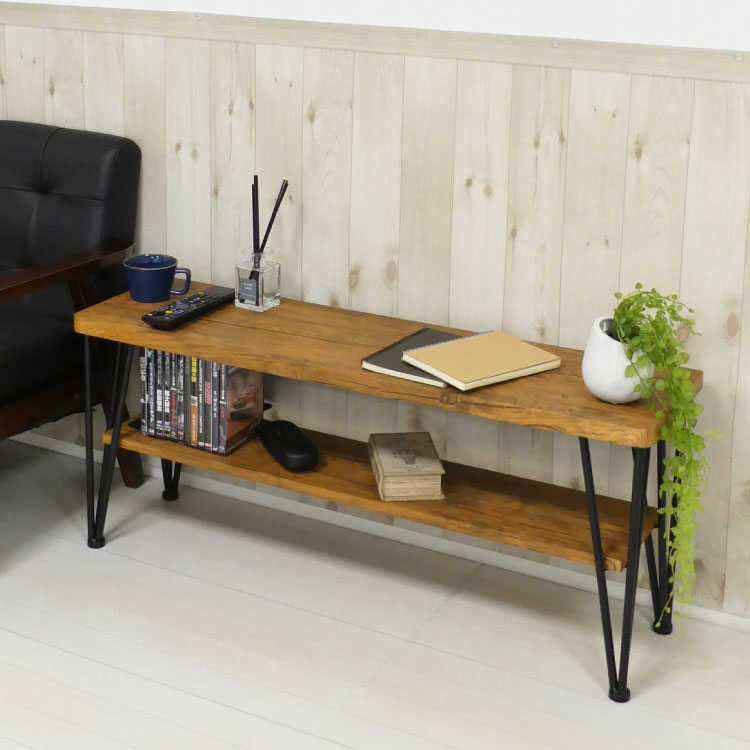 天然木を使用したかのような温かみのあるウッド調ブラウンにスタイリッシュなスチール脚を合わせ、ヴィンテージ風やカフェ風に合うお洒落なテレビ台に仕上がりました。