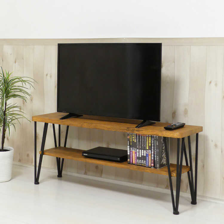ブラウン×アイアンを組み合わせた、おしゃれなオープンテレビ台。