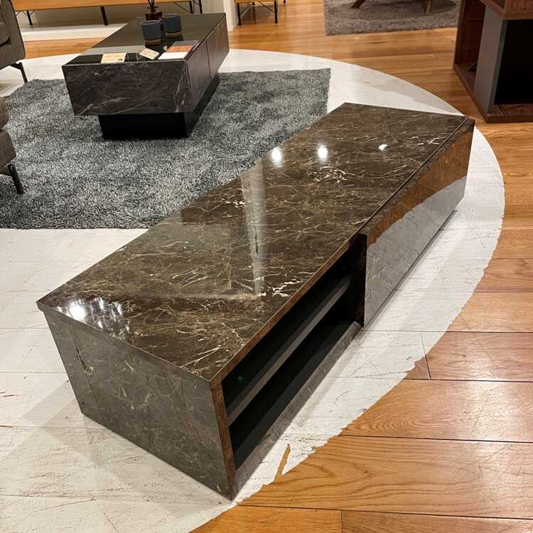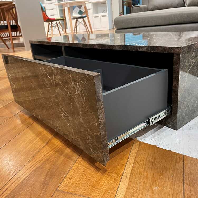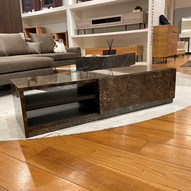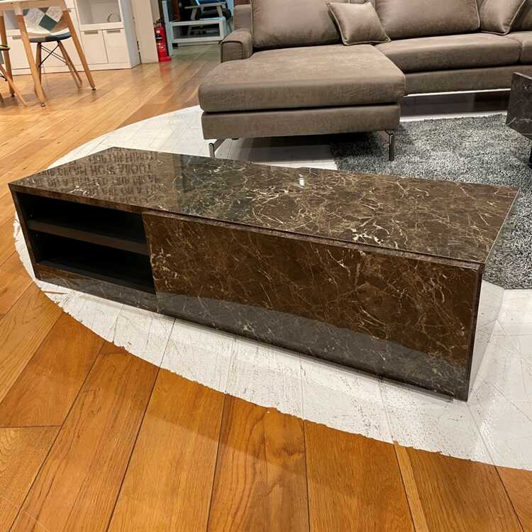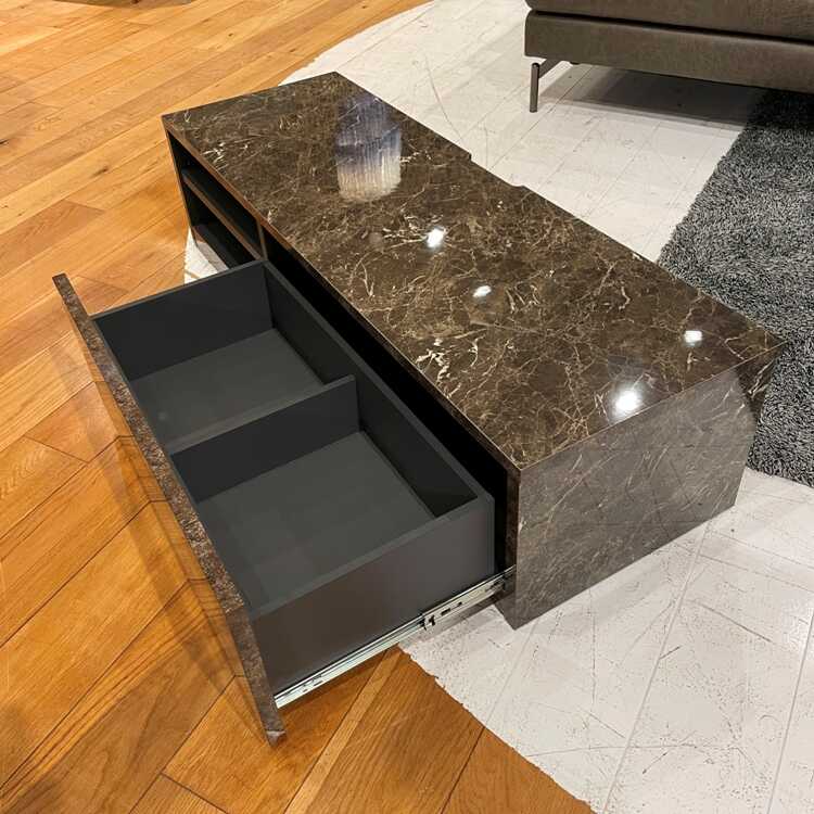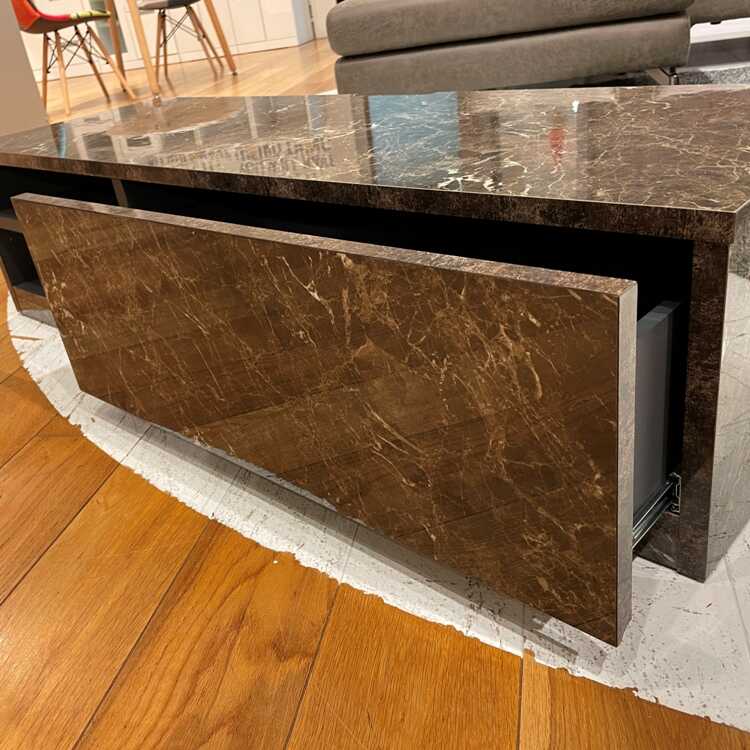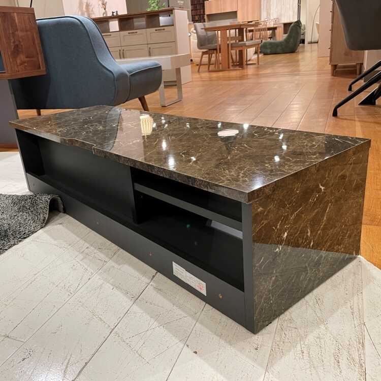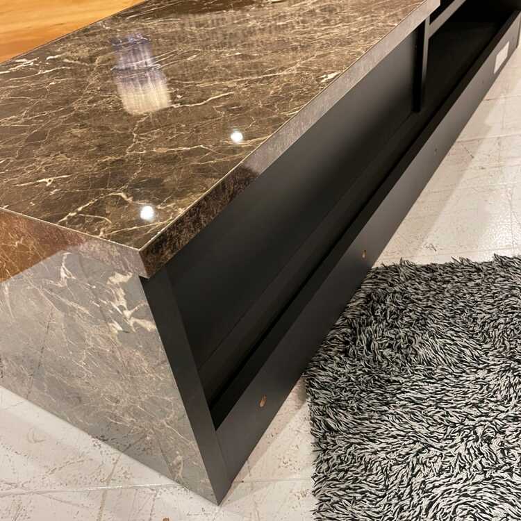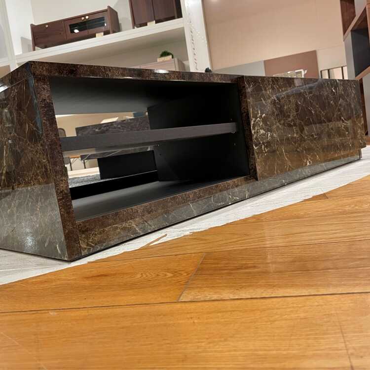 光沢感が美しい大理石柄のメラミンシートを貼ったテレビボード。