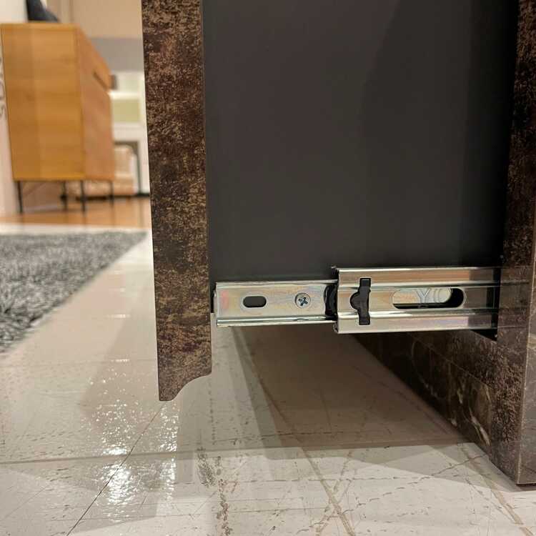 引出しにはグレードの高いフルスライドレールを採用しているので、奥の方まで出し入れがしやすく、物を入れた状態でも開閉が滑らかです。