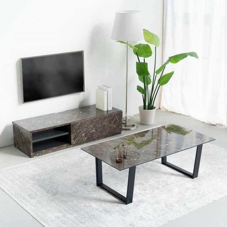 TB-2829黒ブラック大理石柄メラミン貼りテレビ台・幅120完成品