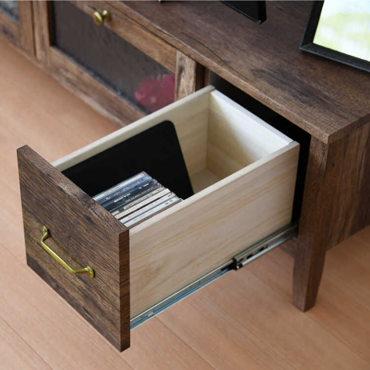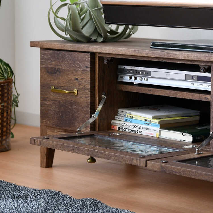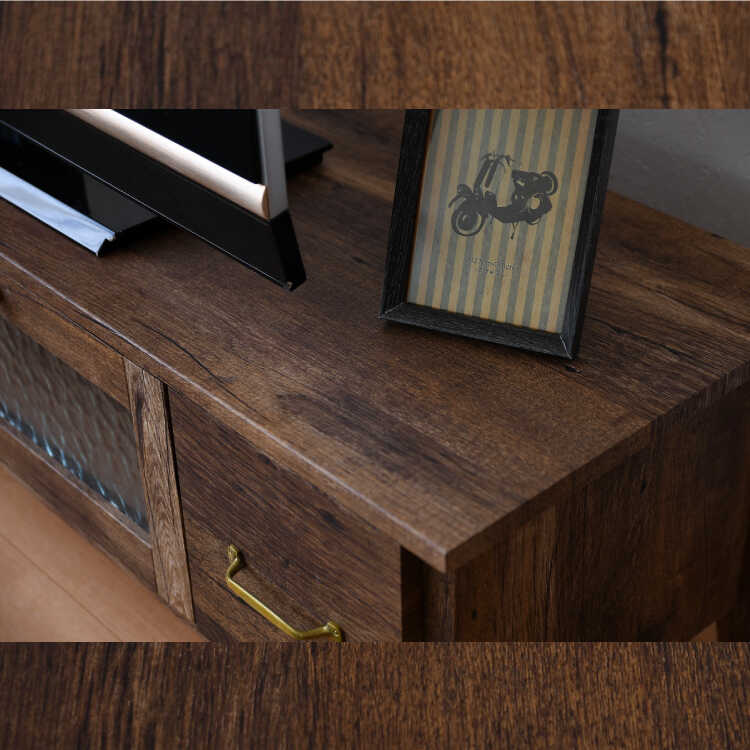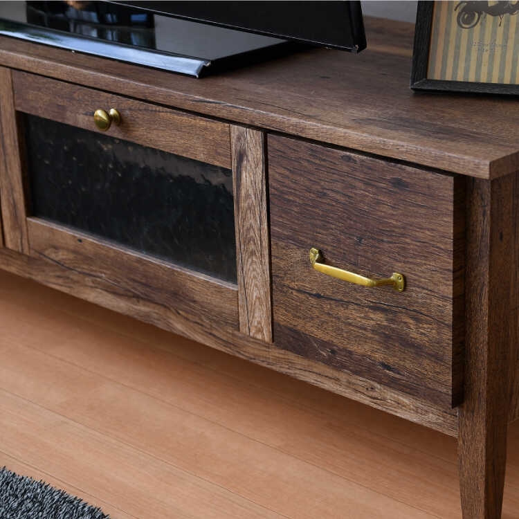古材風のシートを貼ったアンティーク感溢れる幅105cmのテレビ台。