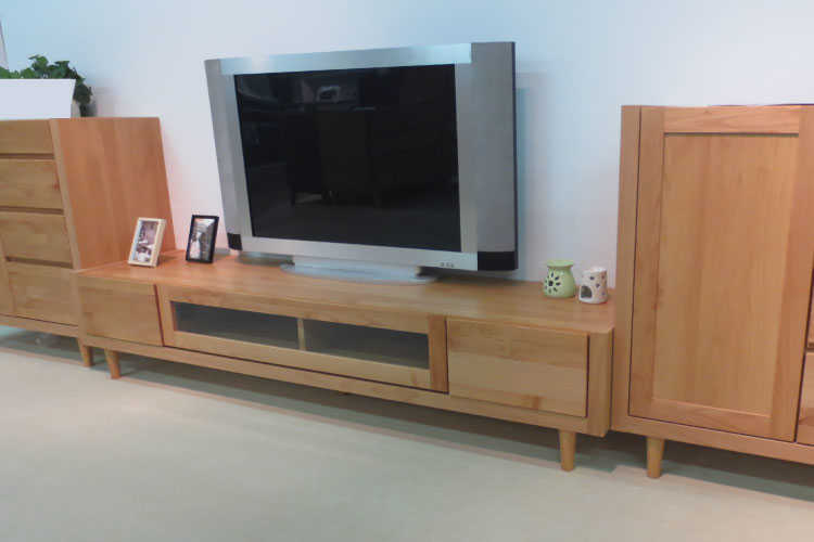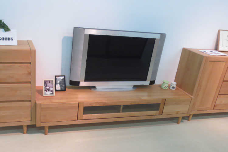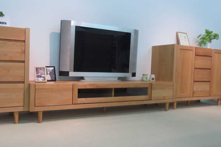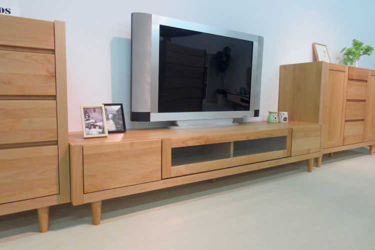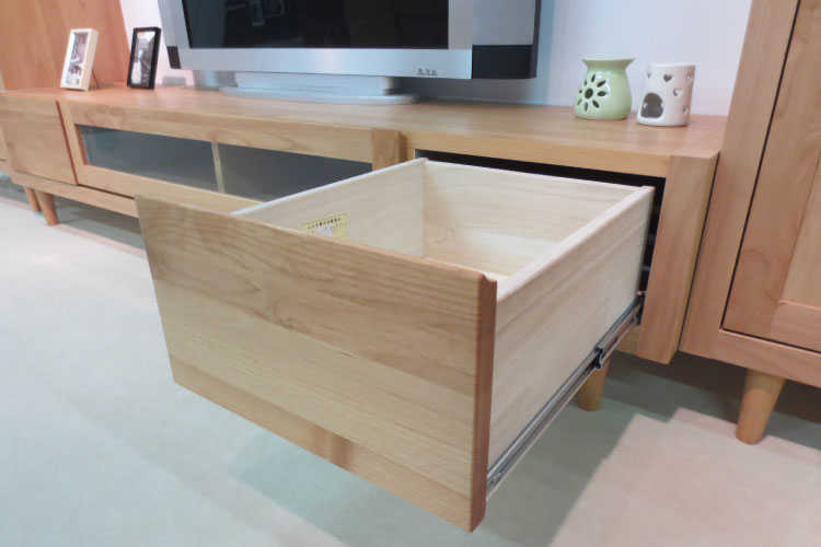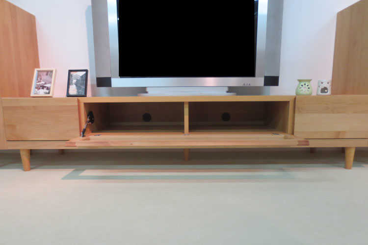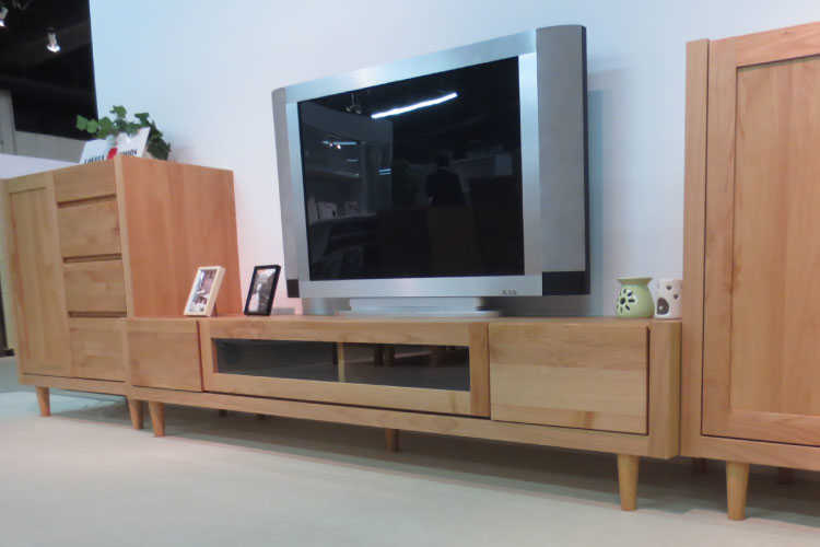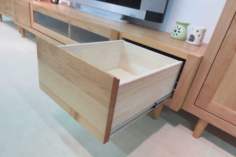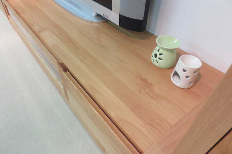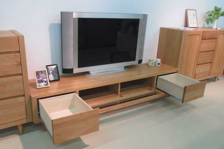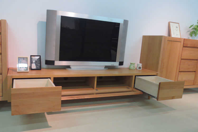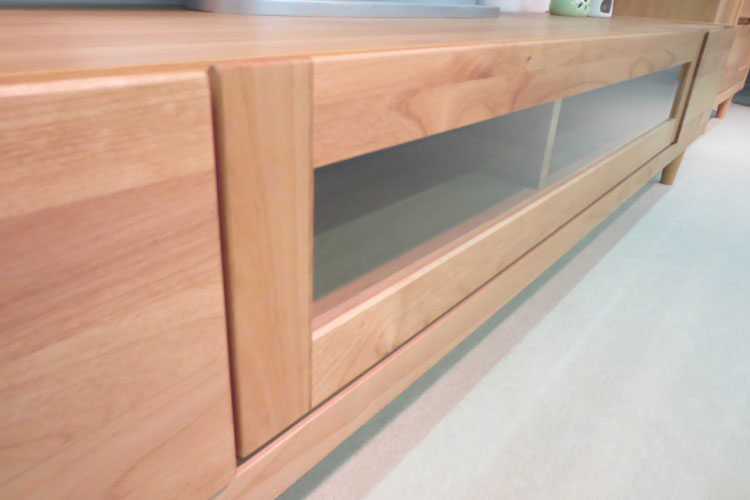 天然木アルダー材の木目の美しさをそのまま生かし自然塗装仕上げのテレビ台。