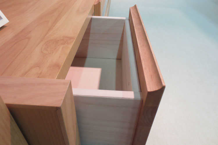 代々に渡って収納家具を作り続けてきた経験と技術で木材のライン加工に長けており、本体だけでなく取手など細かい部分も美しく繊細に作らた作品が多いのが特徴です。