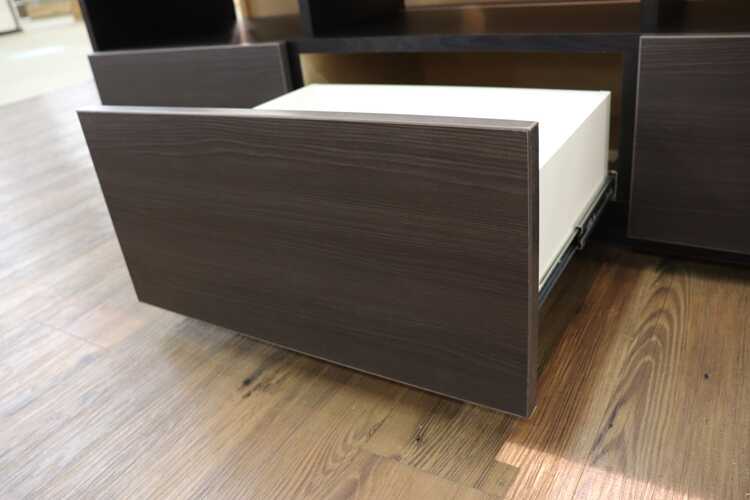 引出し周りや天板周りは高級感のある2mm厚のエッジ貼りで綺麗な仕上がりです。