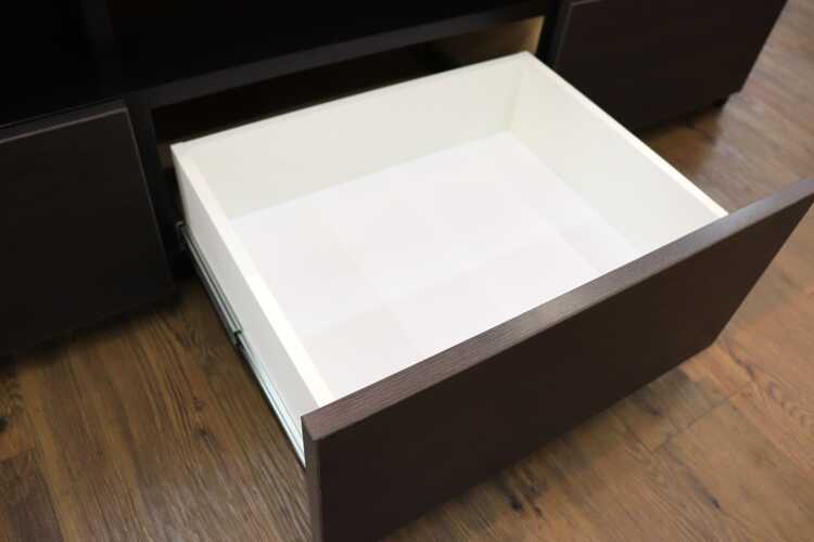 下部の引出し3杯はベアリングフルオープンレールを使用しており、奥の物まで出し入れがしやすく使い勝手も抜群!