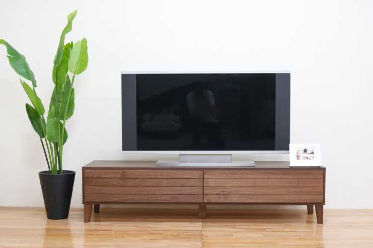 表面に天然木無垢材を贅沢に使用した、シンプルながら高級感溢れる日本製ハイグレードTVボード。