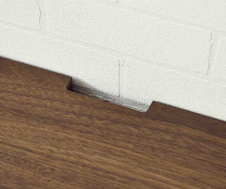 職人手作りTV台の背面は幅木よけが施されているため、壁にぴったりと付けて設置が可能です。