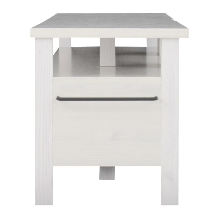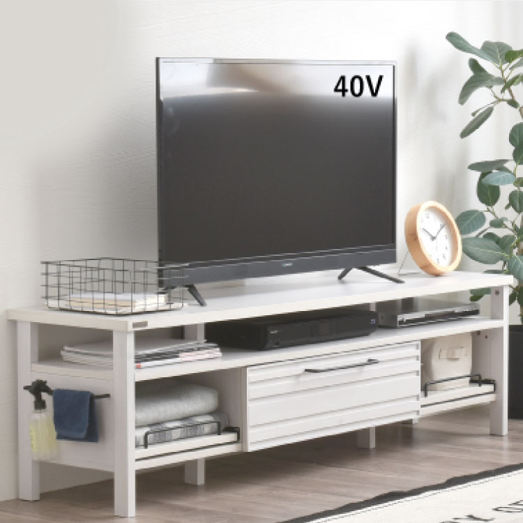 上品な白色塗装と木目調のデザインが北欧インテリアにぴったりなTVボード。