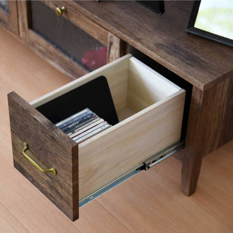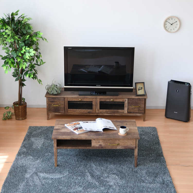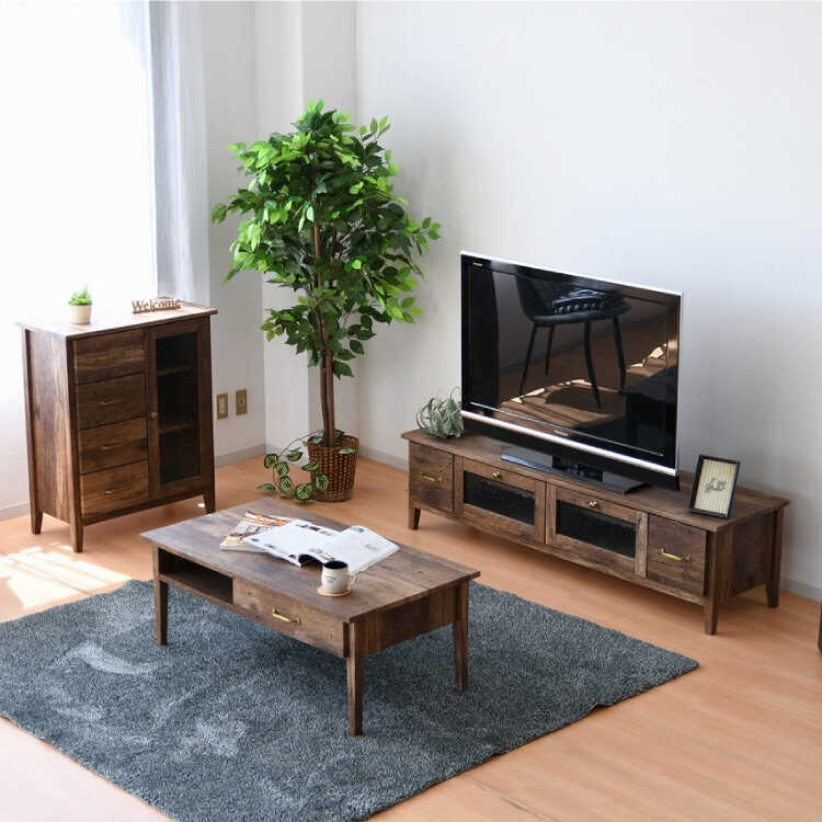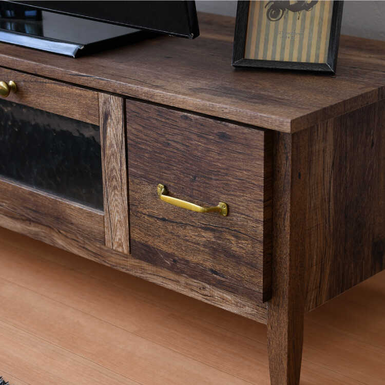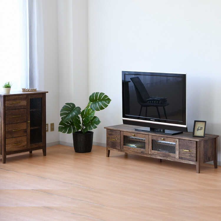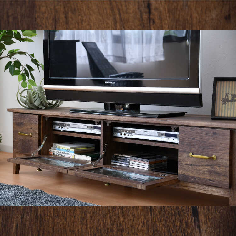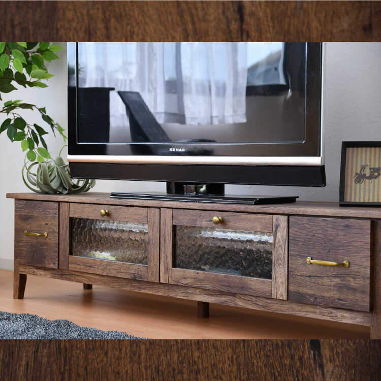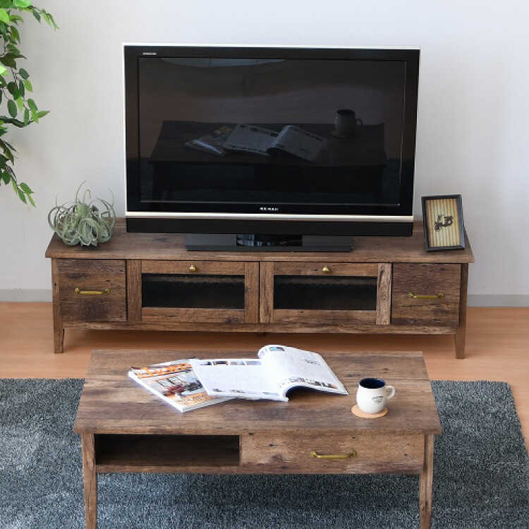 古材風のシートを貼ったアンティーク感溢れる幅152cmのテレビボード。