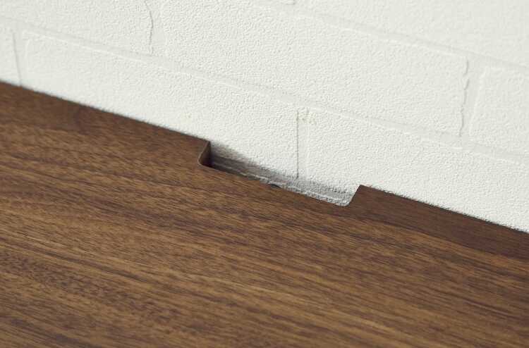 無垢材TV台オイル塗装仕上げの背面は幅木よけが施されているため、壁にぴったりと付けて設置が可能です。