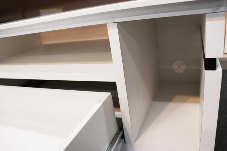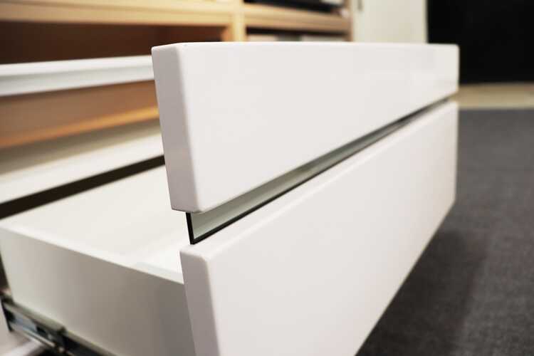 天板や側面・前板には艶感のあるハイグロスシートが貼られ、見るからにスタイリッシュで高級感があります。