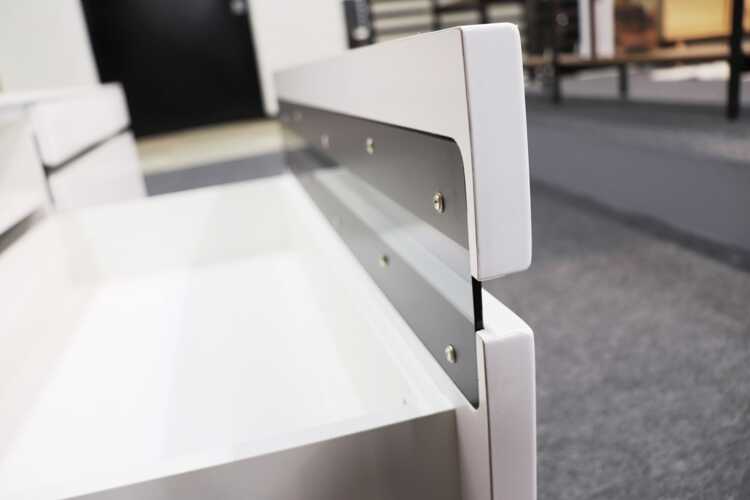 さらに天板より側板を1cm短く設計することで、幅木や配線が通しやすく、より一層壁にぴったりと設置やすいのもポイントです。