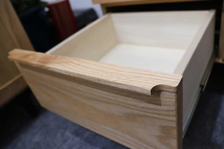 材質 扉・前板:レッドオーク無垢、自然(クリア)塗装