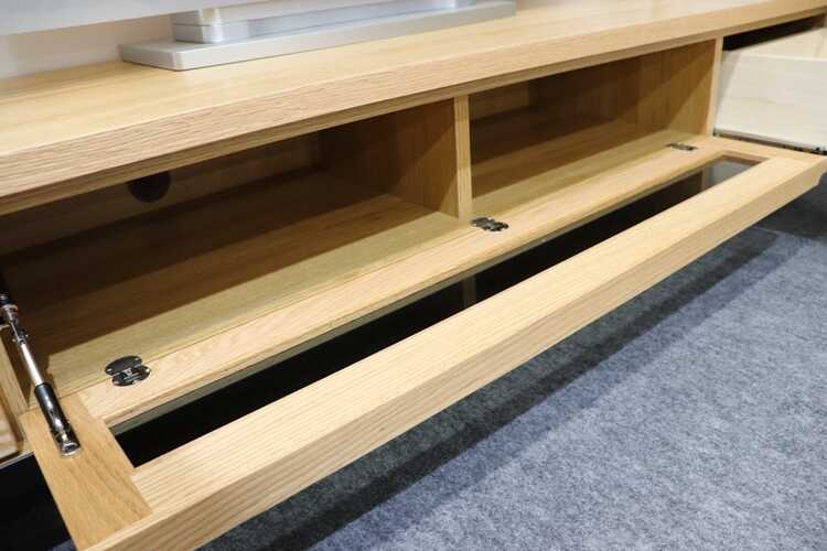 無垢材オイル塗装で仕上げたテレビ台の背面も化粧仕上げが施された豪華な仕上がり。