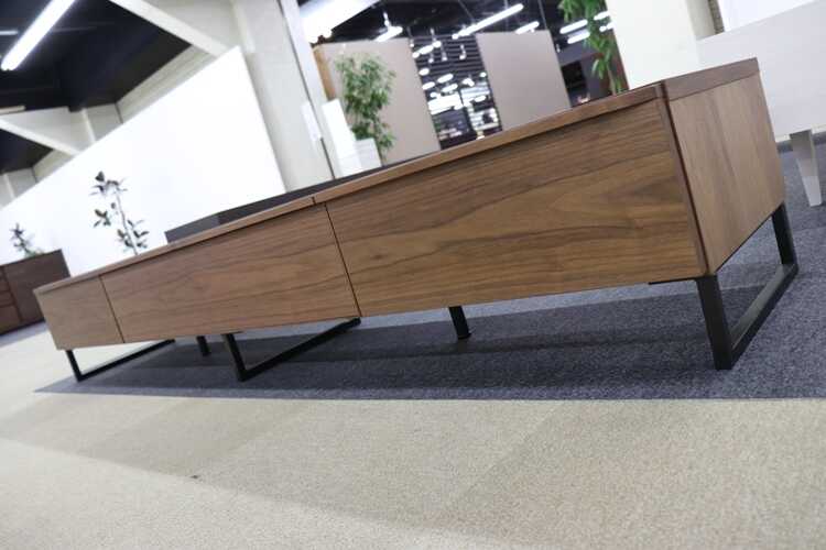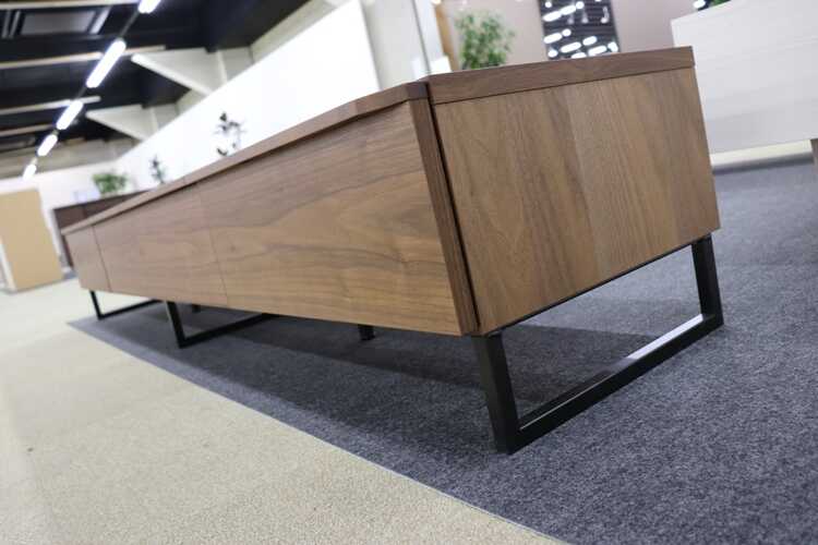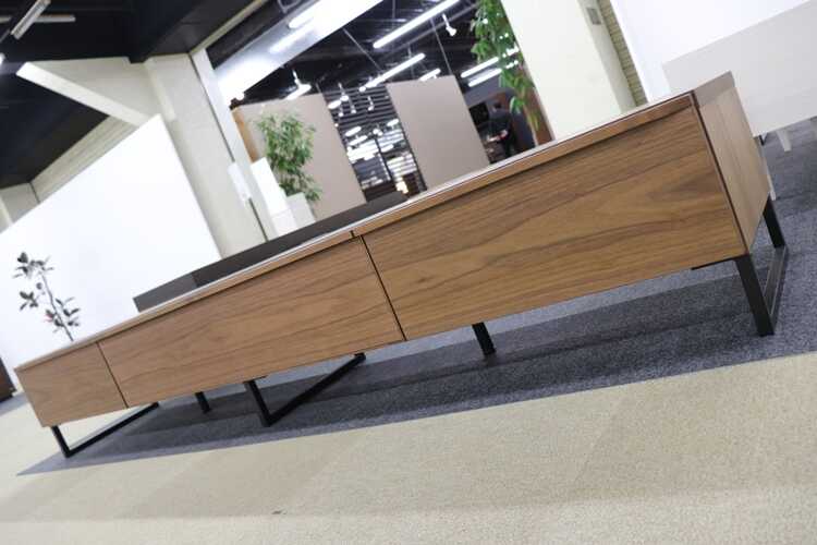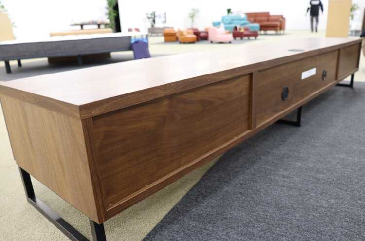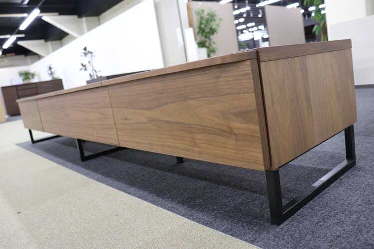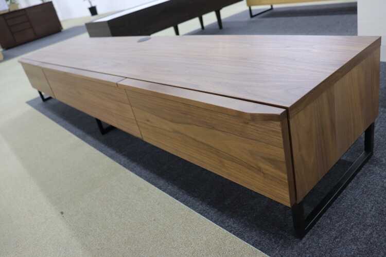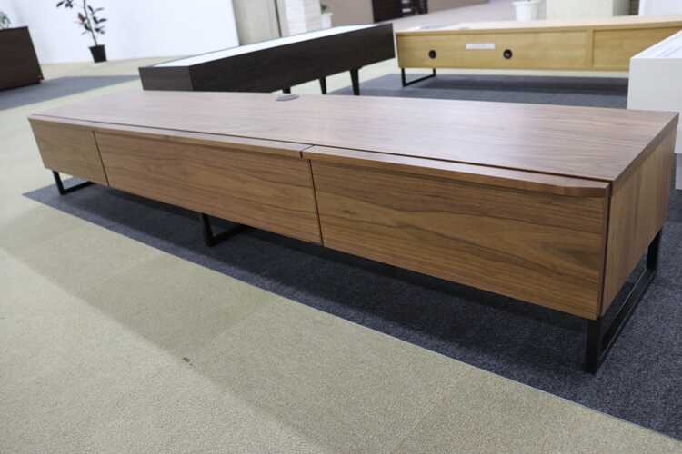 装飾が一切ないこのシンプルさがかっこいい!天然木ウォールナット突板張りの幅220cmローボード。