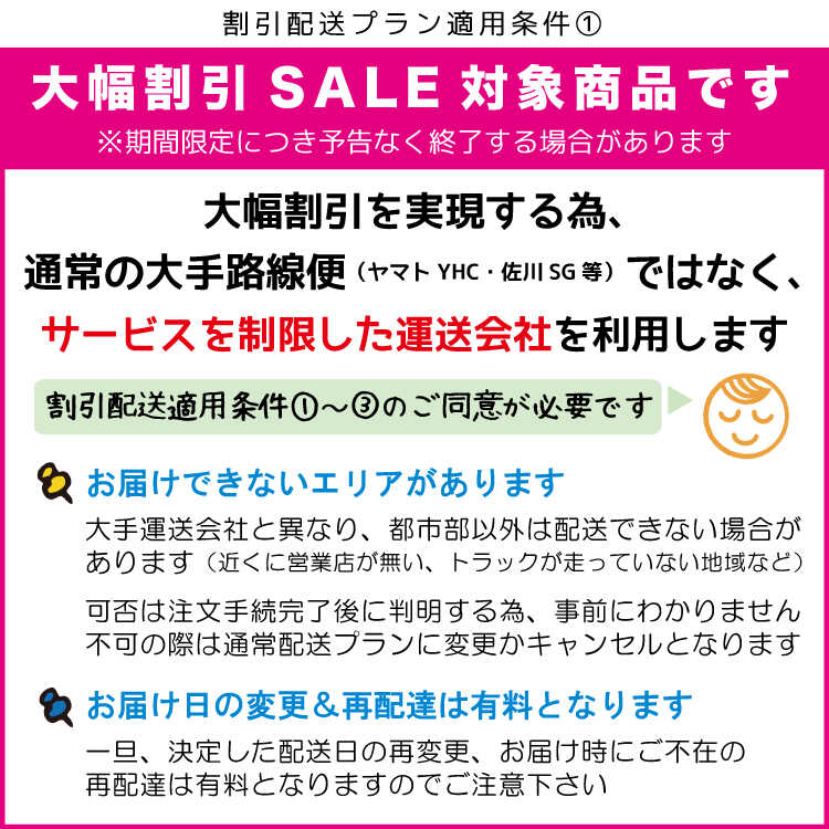 割引配送プランのご選択には配送条件についてご同意が必要です。(ご希望のサービス内容に合わせて通常配送プランといずれかからお選び下さい)