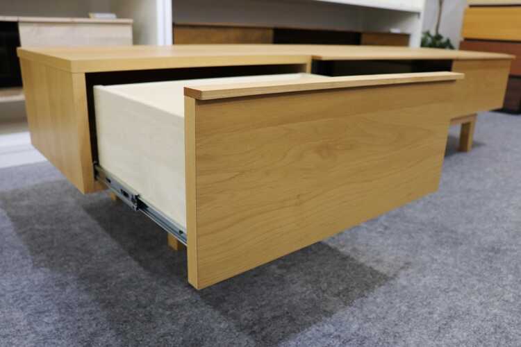 両サイドにはDVDやCDなどたっぷり収納できる引出しを設けました。