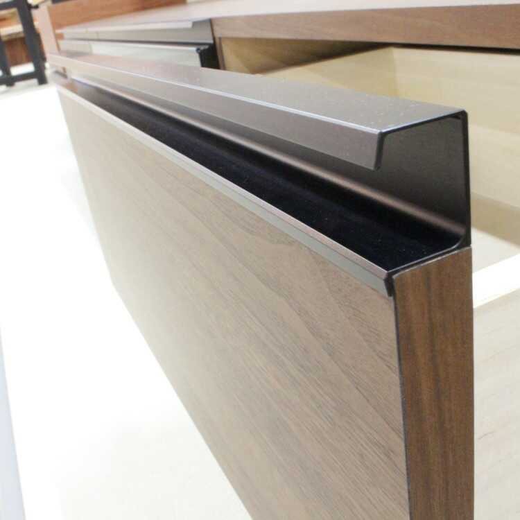天板・前板は、一般的なプリントシート貼りと比べて強度や耐水性の高い強化紙を使用しており、グレードの高さを感じさせます。