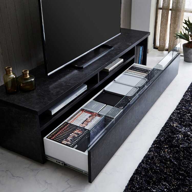 幅180cm・超かっこいい石目柄ブラックのテレビ台(日本製完成品)