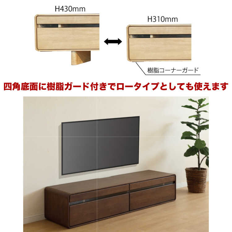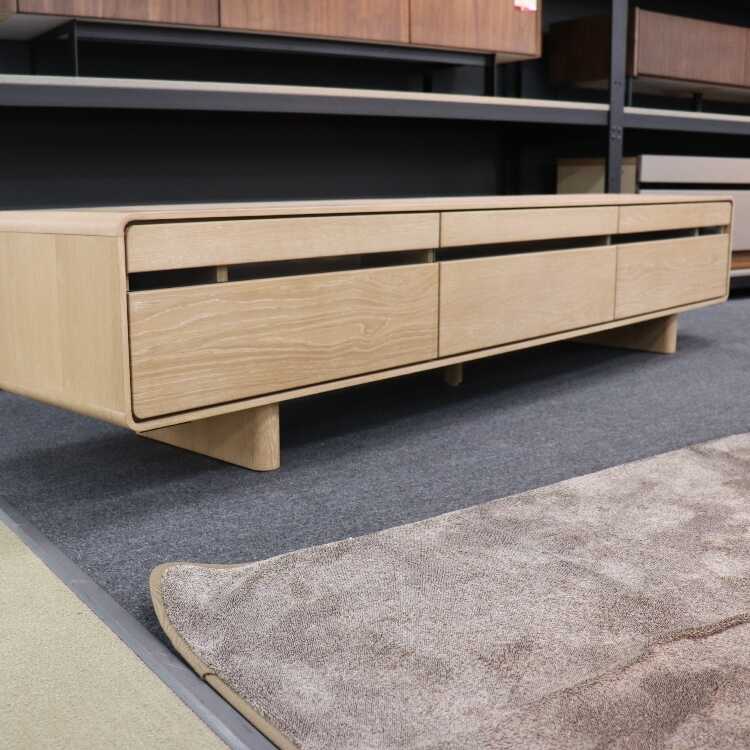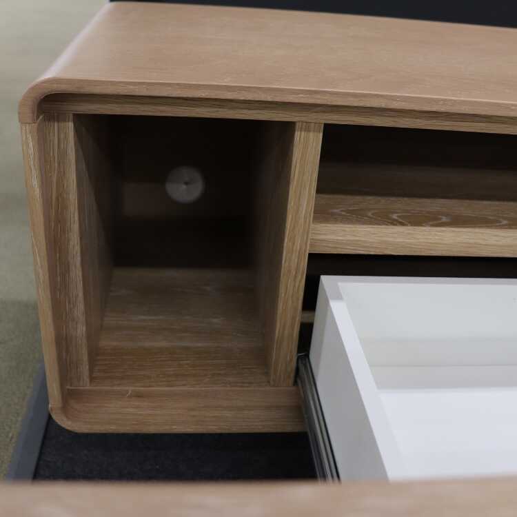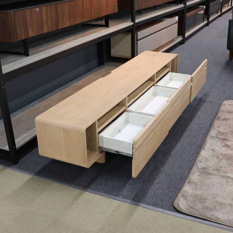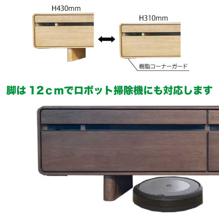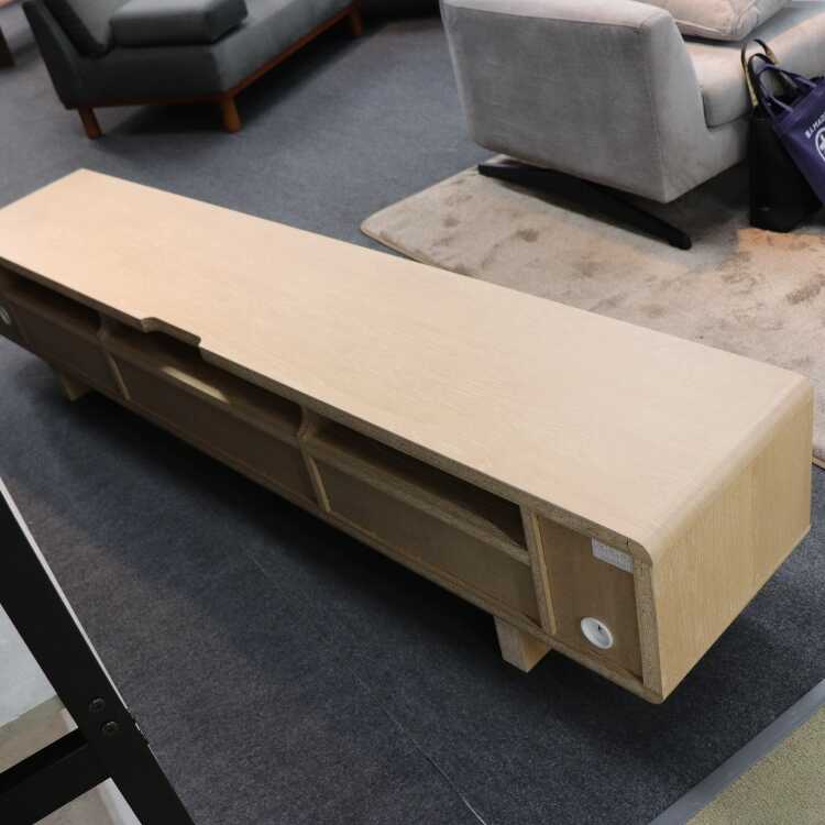 幅210cm・コーナーの丸みが美しい大型の天然木オーク製テレビ台(本体完成品・ロータイプでも使える・ロボット掃除機対応)