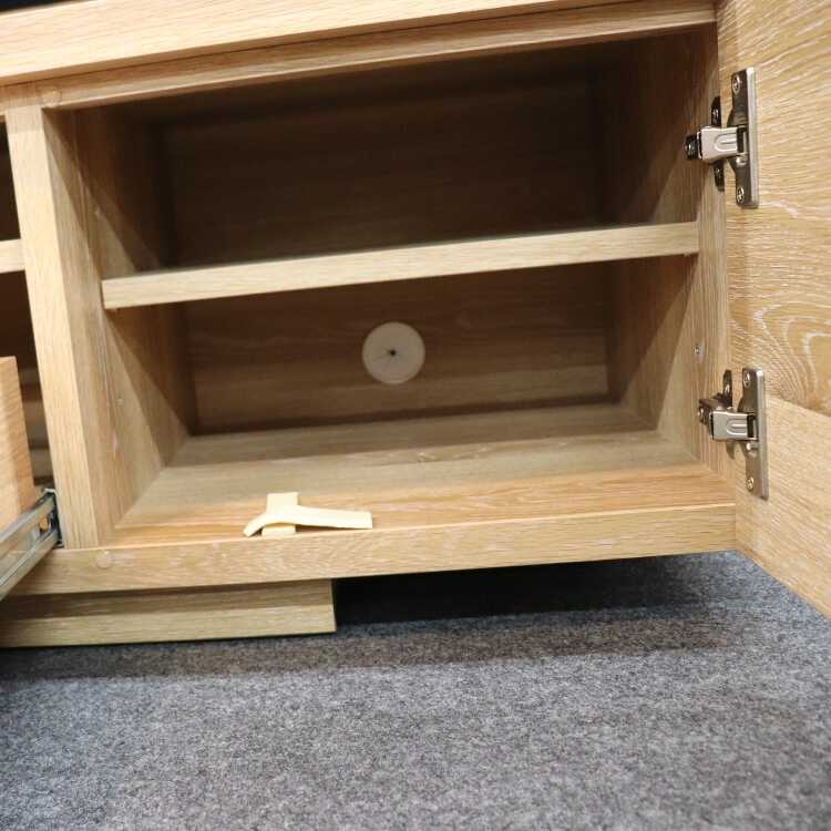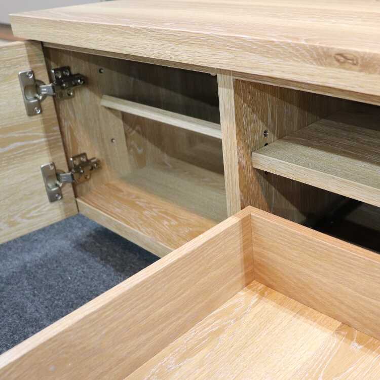 幅200cmの大型サイズ、高級木材の天然木オークを使用、職人が工場で組み上げた完成品…にもかかわらず驚愕のロープライスを実現したコスパ最強のテレビボード。